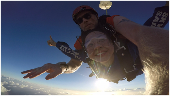 塞班另外一個(gè)最值得強(qiáng)烈推薦的項(xiàng)目就是跳傘了,真是很奇妙的感覺,完全無(wú)法用言語(yǔ)或者圖片、視頻來形容,有機(jī)會(huì)一定要自己親身體驗(yàn)?zāi)欠N感覺。跳傘的英文是SKYDIVE,空中潛水,也就是可以像魚在水中自由自在游泳一樣,在空中自由自在的飛翔。雖然跳傘的過程中,不能掙脫地心引力,會(huì)做自由落體運(yùn)動(dòng),但張開雙臂,自由自在的飛在空中,真的是別的活動(dòng)無(wú)法替代的,以后有機(jī)會(huì)還得再去參加,這次也是突破了自己的心理障礙,突破了自我。