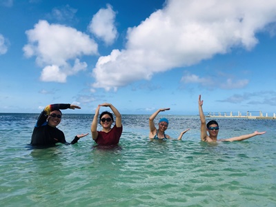 一群人,一片海,或者像魚兒水中游,或者像一片葉子漂浮水中。我這只旱鴨子也只能在邊上摸摸海水,滿眼羨慕地看著他們全身放松,隨著海水慢慢飄蕩到遠方。海邊自由玩樂,也是最美好的時光,我們在水中,拼成愛你的形狀:CDEL。
