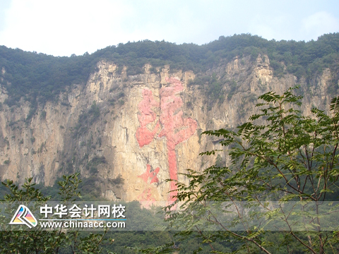 走到半山腰,我們來到了“摩崖”的面前,此時大家都有點氣喘吁吁了,但隨著領導的“沖崖”令下,我們開始了集體“沖鋒”,竟沒有一個人落在下面。登高遠望,雖沒有振臂狂呼的沖動,但也為自己的堅強感到一絲激奮。我們在摩崖前集體合影,每個人都笑得異常燦爛。