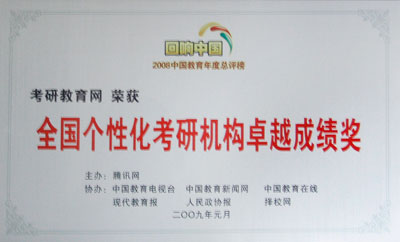 近日,由中國教育電視臺、中國教育新聞網(wǎng)等多家媒體協(xié)助舉辦的騰訊網(wǎng)“回響中國”2008中國教育年度盛典圓滿落幕。在這次盛典中,正保遠程教育榮獲多個獎項,旗下的考研教育網(wǎng)榮獲“全國個性化考研機構(gòu)卓越成績獎”。