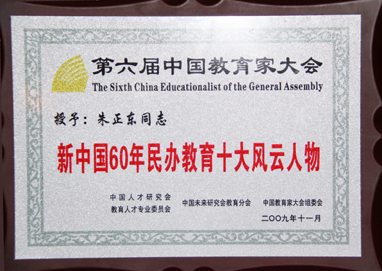 “第六屆中國教育家大會”于11月19日上午在北京大學百年講堂隆重開幕,在開幕式上的一系列表彰活動中,正保遠程教育董事長、CEO兼總裁朱正東先生當選“新中國60年民辦教育十大風云人物”。 正保遠程教育榮獲“2009中國最具潛力的十大教育機構”、“2009中國誠信教育培訓機構”2項榮譽。