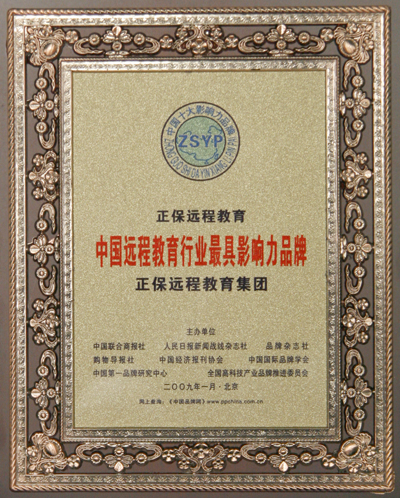 獲獎證書正保教育榮獲“中國遠程教育行業最具影響力品牌”