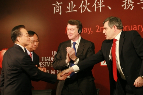 2月2日上午,中英工商峰會在倫敦國際董事協會成功舉行。溫家寶總理與英國首相布朗共同出席了峰會開幕式,并分別進行了主旨演講。同時參會的還有,英國貿易投資總署首席執行官安德魯·凱恩爵士、英中貿易協會主席白樂威爵士、中國財政部副部長李勇先生、100多名中國企業家代表和來自英國工商界的幾十位知名企業家代表。
