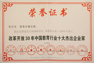 2009年1月11日,第五屆(2008)“中國品牌影響力高峰論壇”年會在北京人民大會堂隆重召開。正保遠程教育(CDEL)董事長、總裁兼CEO朱正東當選“改革開放30年中國教育行業十大杰出企業家”。