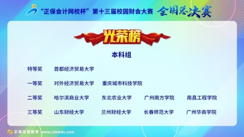 第十三屆“正保會計網(wǎng)校杯”全國校園財會大賽已經(jīng)落下帷幕,這些代表著在校大學(xué)生財會知識最高水平的11支隊伍在星光熠熠的舞臺上展示了自己的專業(yè)知識和業(yè)務(wù)水平,創(chuàng)造了精彩絕倫的頂級賽事!讓我們期待第十四屆“正保會計網(wǎng)校杯”全國校園財會大賽精彩繼續(xù)!